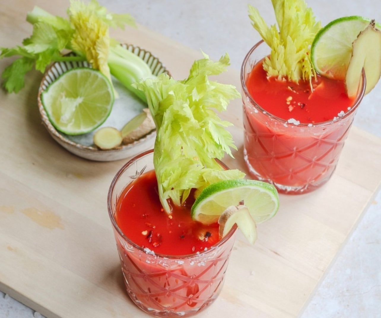 Garnish with lemon, celery and a spiced rim